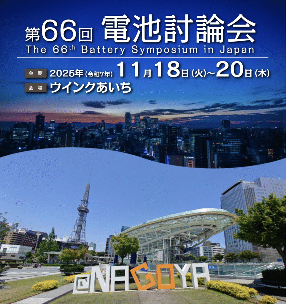 第66回電池討論会(@ウインクあいち, 2025年11月18日〜20日)に参加しました。当研究室からは、山下さん (M2)、澤山助教が口頭発表を行いました。